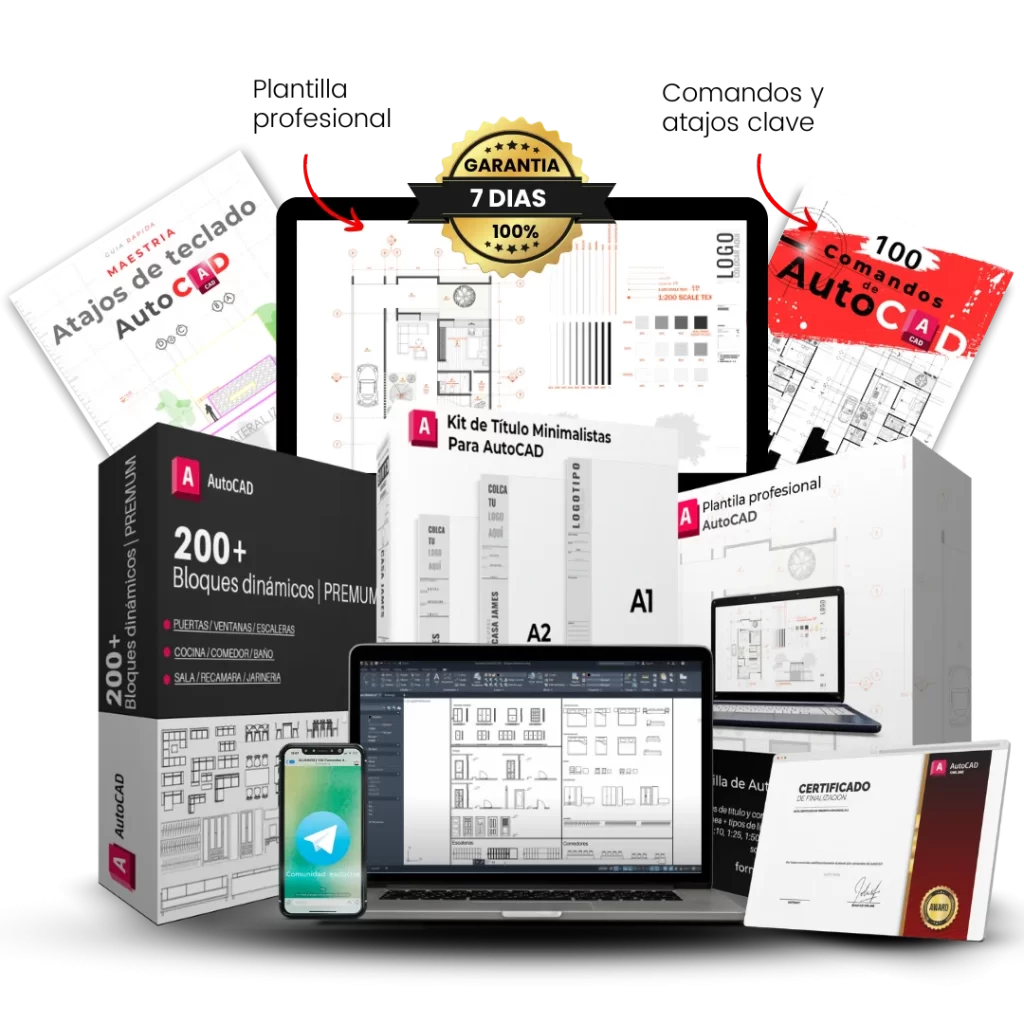 Los recursos del pack (plantillas, bloques, comandos y atajos) son compatibles con AutoCAD desde la versión 2013 en adelante, incluyendo AutoCAD 2025.