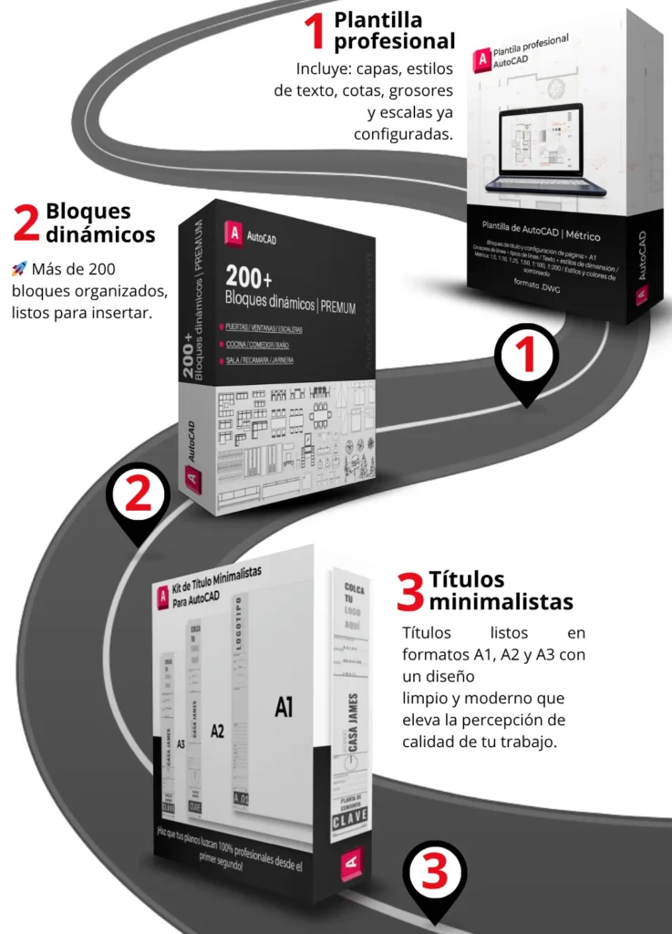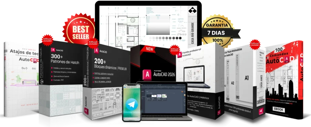 Los recursos del pack (plantillas, bloques, comandos y atajos) son compatibles con AutoCAD desde la versión 2013 en adelante, incluyendo AutoCAD 2026.