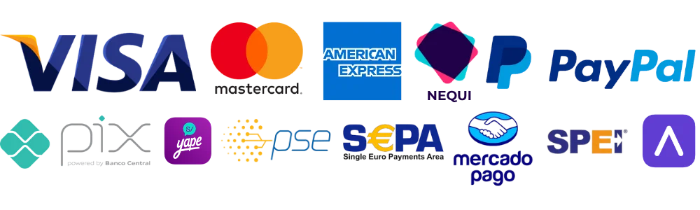 Aceptamos tarjeta de débito, crédito, yape, Nuquí, PSE, mercado pago y PayPal. También puedes pagar en efectivo en tiendas autorizadas dependiendo de tu país (como OXXO en México).